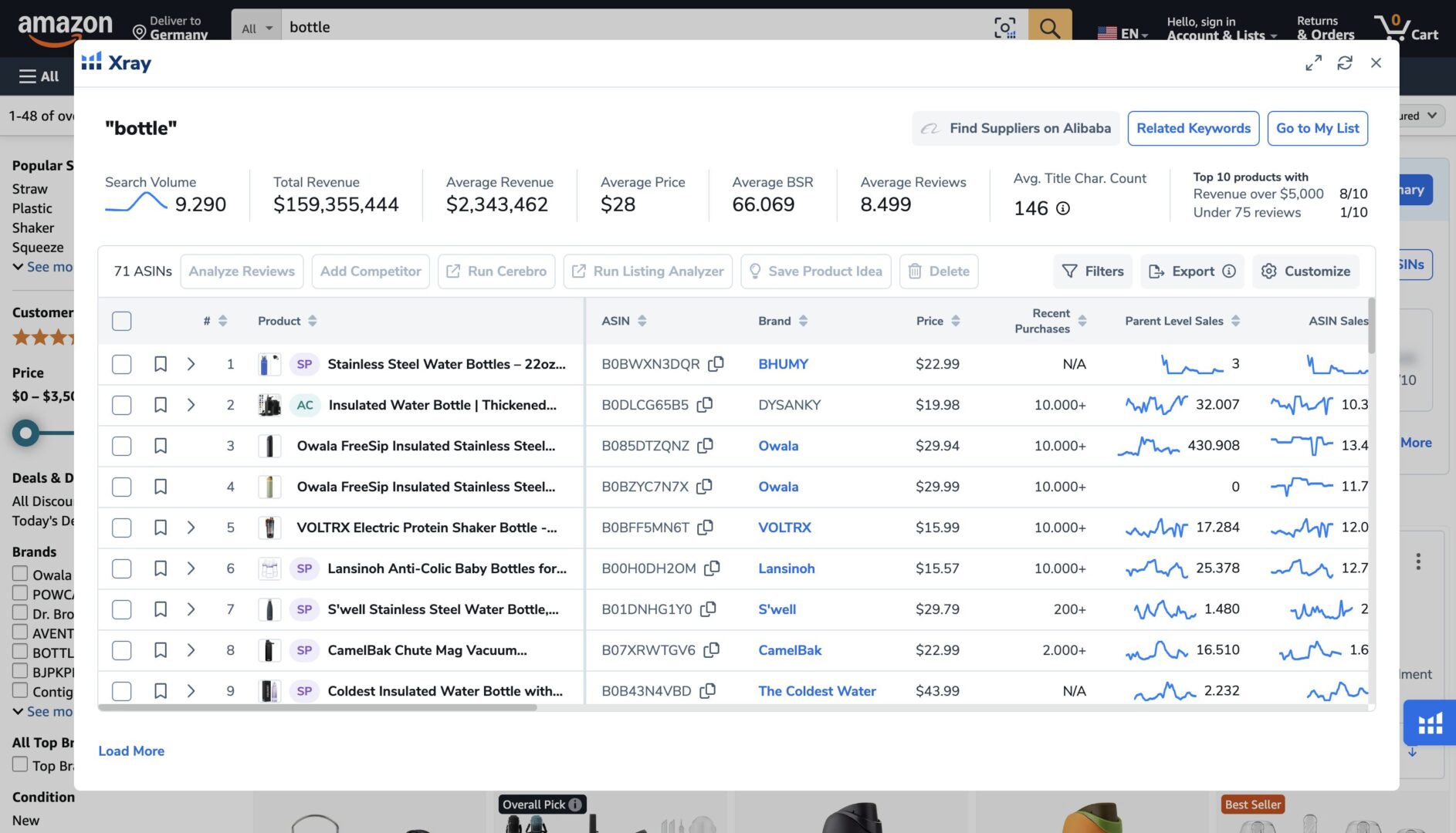 And the Xray Chrome extension? Game changer. You get 10 uses monthly to analyze any product page on Amazon. Pull up a competitor’s listing, hit Xray, boom – you see their estimated daily sales, monthly revenue, and much more: