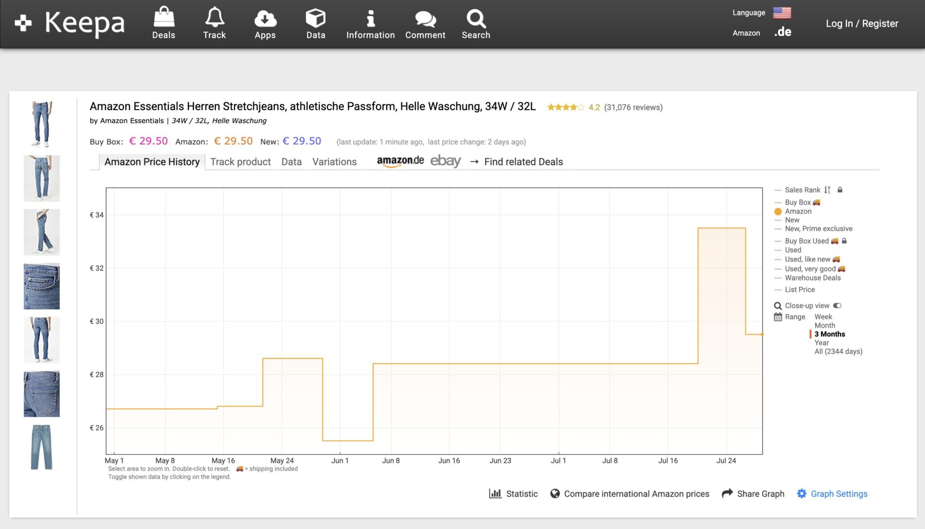 Then, the typical Keepa chart shows up: