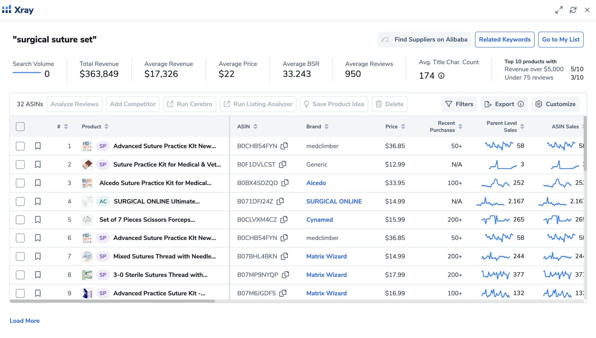 J’ai récemment trouvé un produit très intéressant – un set de suture chirurgicale. Analysons la niche du set de suture chirurgicale avec l’Extension Chrome Extension d’Helium 10 sur Amazon. Tout d’abord, rendez-vous sur Amazon et saisissez « Set de suture chirurgicale » dans la barre de recherche Amazon. Voici ce que vous verrez: